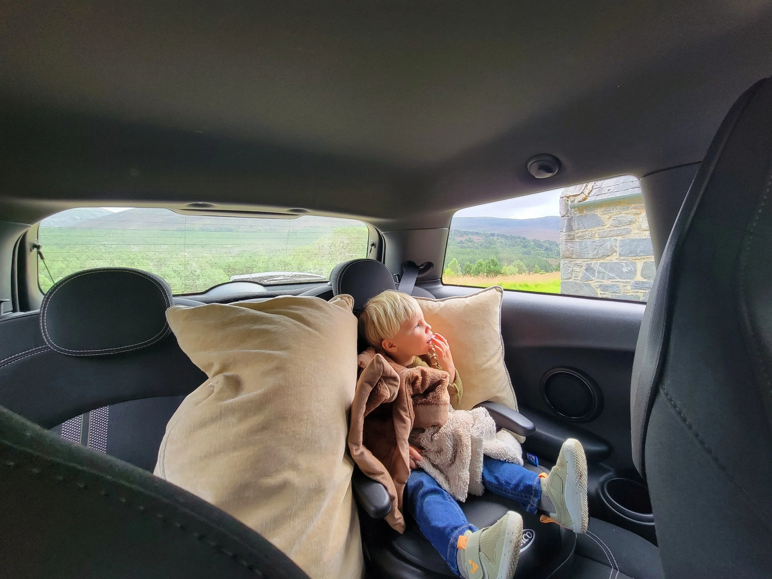 We spent a relaxing and interesting 1 or 2 hours at Culloden. Then we three hopped back in the Mini and headed towards the nearby city of Inverness. The goal was to find some petrol asap. And also to buy some much needed groceries. We settled for a Tesco market on the outskirts of Inverness which also had a fuel station nearby. Tesco is a nice store with a good selection of food options plus other products such as some much needed diapers for Téo. (Once again we were impressed with the quality of food options. Even the snacks for children were health conscious without the preservatives and loads of processed sugars. Instead simple straightforward plant based ingredients sweeten with natural sweets.) One thing high on the list was a good hot chocolate mix to enjoy in the cool evenings. And some Clotted Cream for the scones we had picked up earlier. (Clotted cream and Raspberry Jam…perfect combo yum!)